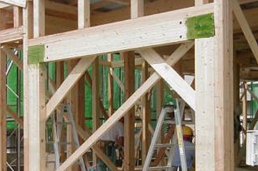 木造住宅の倒壊原因の一つとして、耐力壁のアンバランスから起こる「ねじれ」が指摘されています。ねじれ防止には、窓の多い南面の開口部を小さくする必要がありますが、これはお客様のニーズとは異なってしまいます。